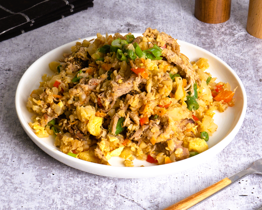 A keto twist on the classic fried rice, substituting cauliflower rice for the real thing. Fun fact: Fried rice has been around for thousands of years, likely invented as a way to use up leftovers—now you can "repurpose" without the carbs.